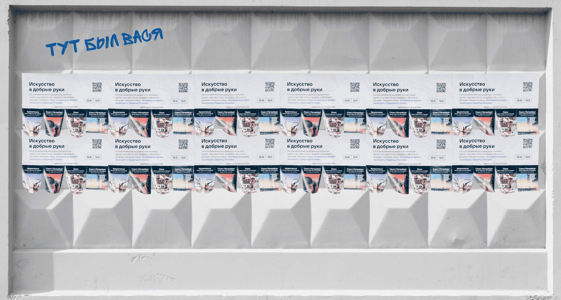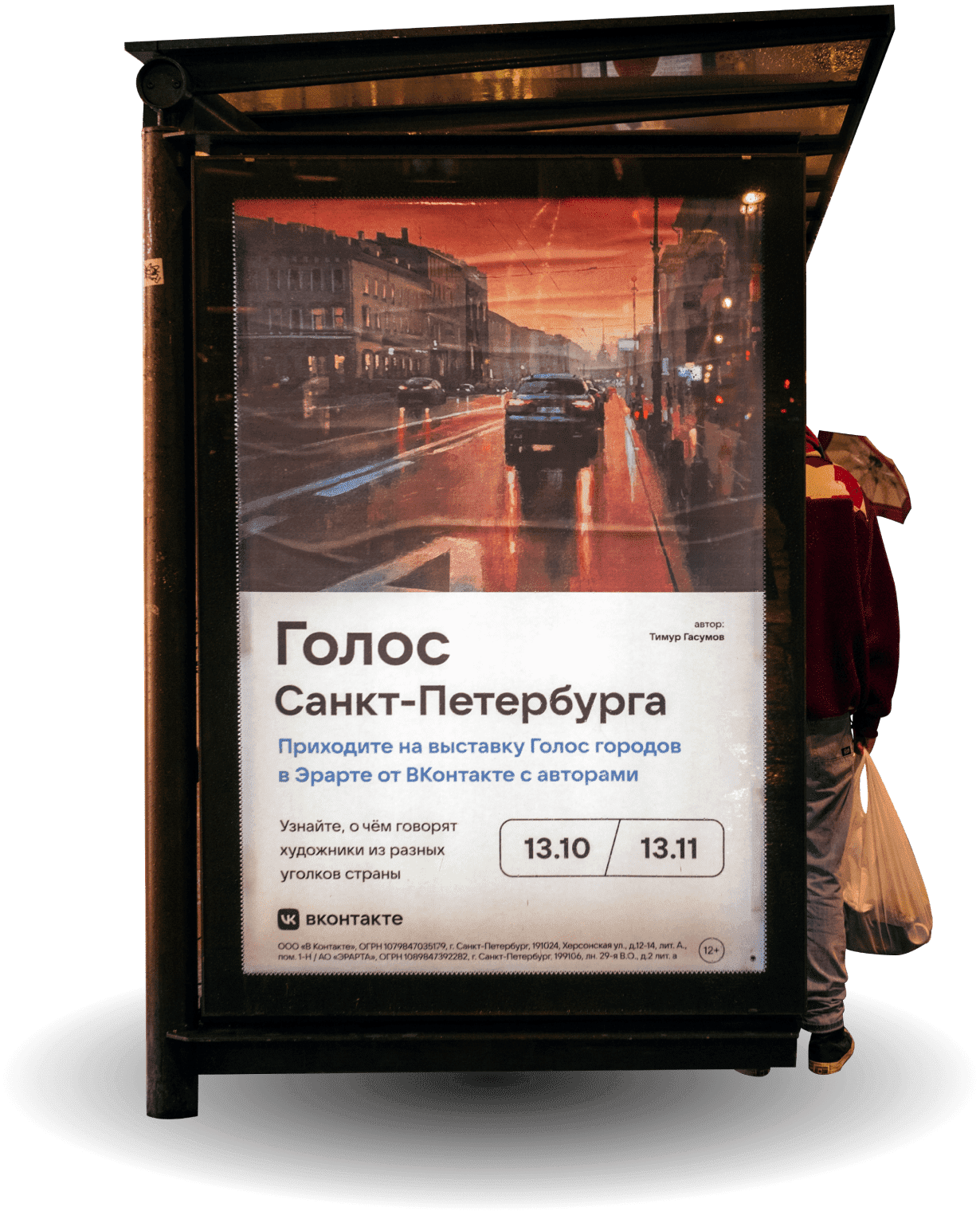 Nevsky Prospekt remains St. Petersburg's main communication channel. Respecting the cultural code of the city, we gave the citizens of St. Petersburg a reason for small talk at a bus stop: we installed city lights with posters by contemporary artists. In the city centre, paintings with the city's night lights appeared, while in the residential districts appeared landscapes with panel buildings. We also put up "Art for Adoption" tear-off adverts with art stickers in various St. Petersburg districts.
